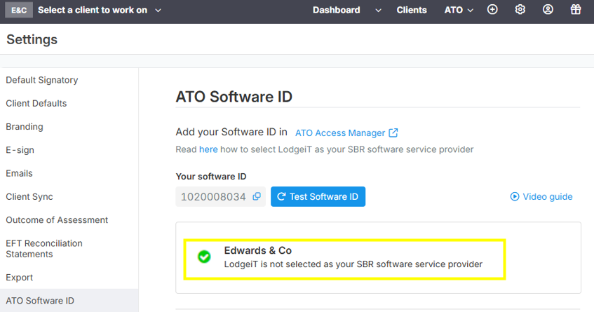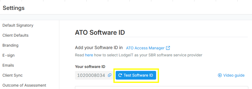 After completing these steps, refresh your LodgeiT interface, please click the "Test Software ID" button.