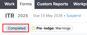 Completed forms are locked to prevent accidental changes. To edit, you must Unlock the form to revert it to Draft.