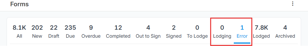 - FORM STATUS: LODGING and ERROR