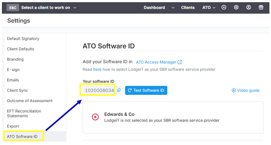 b. Please navigate to the ATO Access Manager (you may click the link below) and verify that the Software ID in both the ATO Access Manager and LodgeiT are identical.
