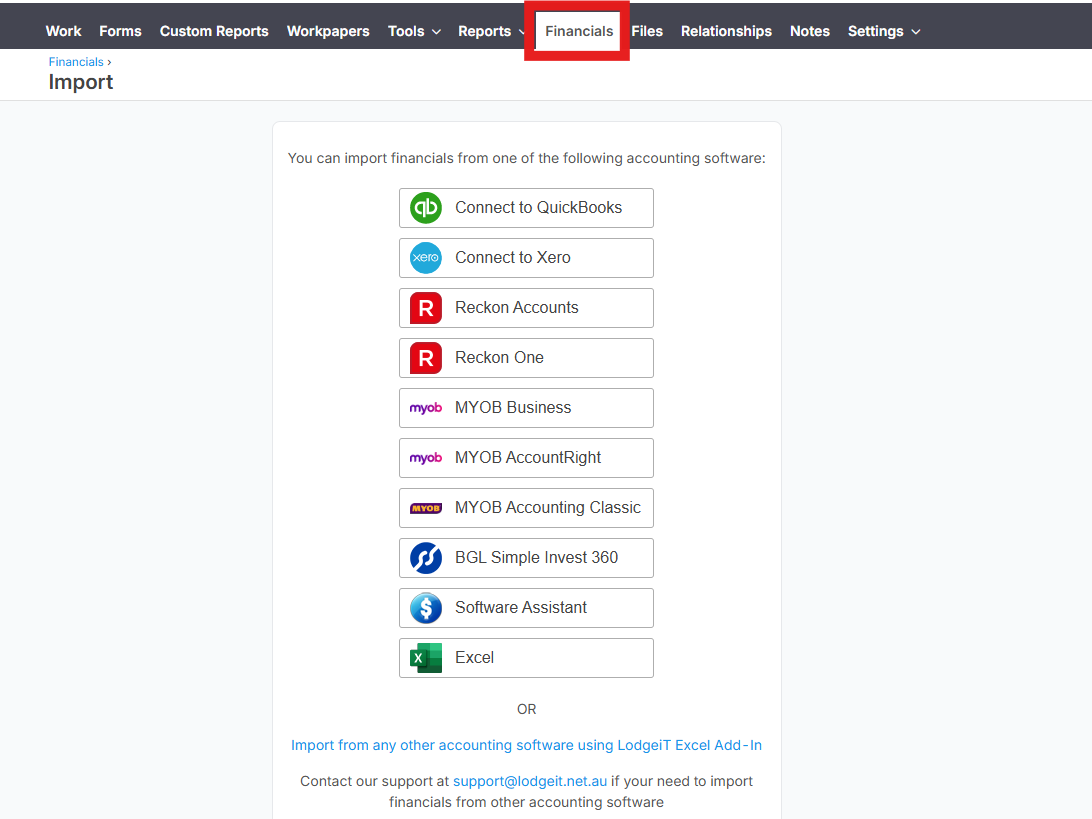 Note: LodgeiT is designed for import of accounting data. Learn more