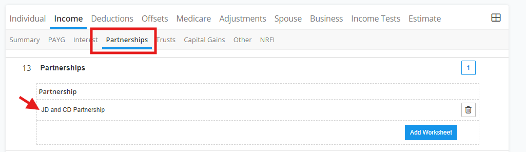 Tick check "Partnerships" among the dropdown selection.