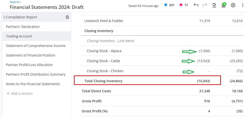Note that we should have a separate spreadsheet for all those schedules to understand that the value is correct. Below images shows that the closing value in the spreadsheet matches with the closing inventory values in the Financial Statements