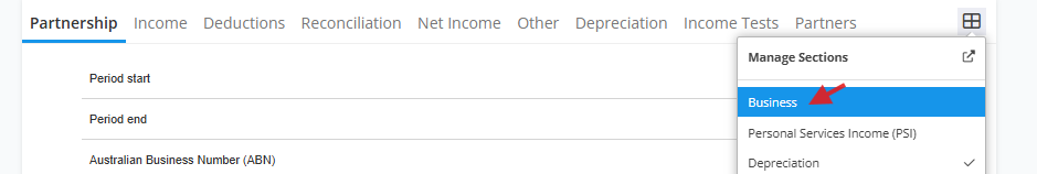 Press "Income", then "Business".