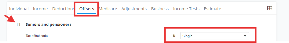 If the taxpayer does not have a spouse, select the "Single" code for the T1 Tax offset code. Dependent children are not considered for SAPTO eligibility or calculation