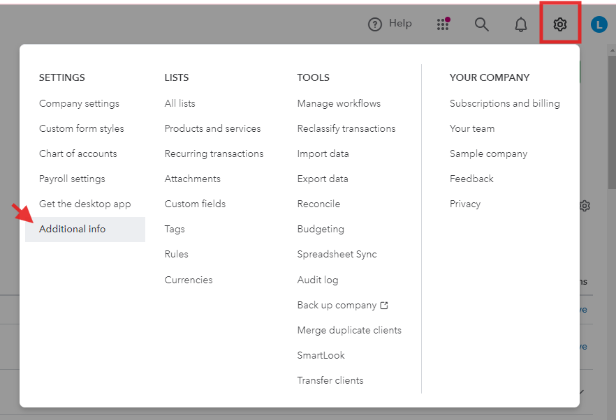 2. Navigate via Gear wheel and select Additional info