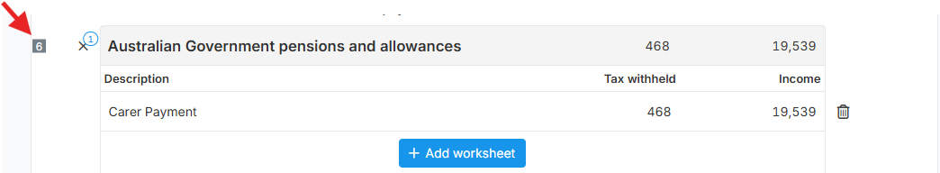 Go to Item 6 "Australian Government pensions and allowances" and click the worksheet to open.