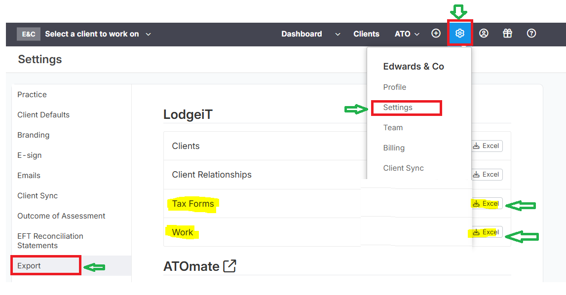 Ensure you have "Owner" or "Admin" access in LodgeiT, as only these roles can export data.
