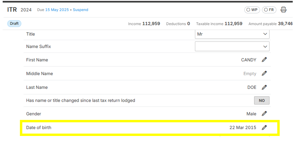Please check the if the Date of Birth of the individual taxpayer is correct or NOT under 18 years old.