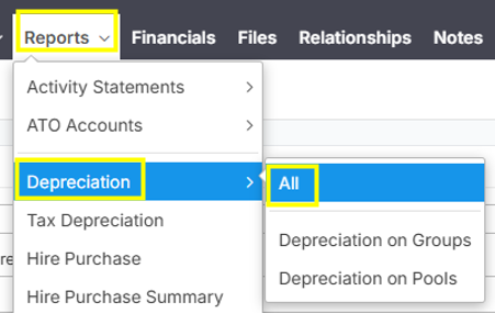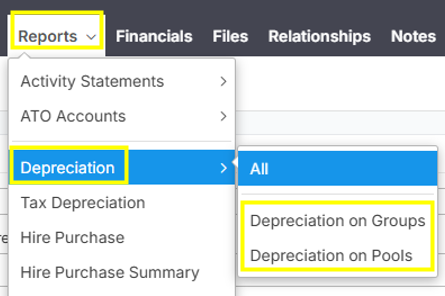 NoteYou can also select more specific by selecting "Depreciation on Groups" or "Depreciation on Pools".