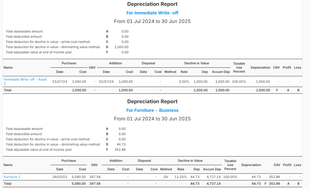 Sample Depreciation Report: