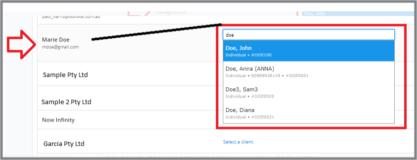 Once selected, the client details in LodgeiT will sync back to QBO automatically.
