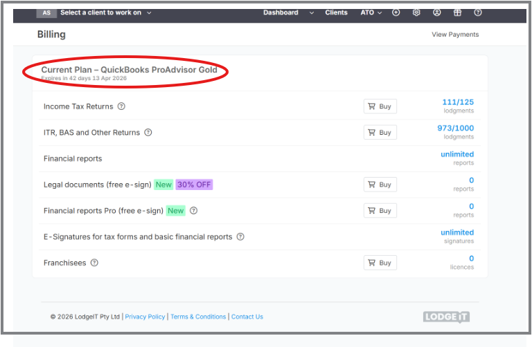Step 2: Purchase LodgeiT lodgement subscription plan.