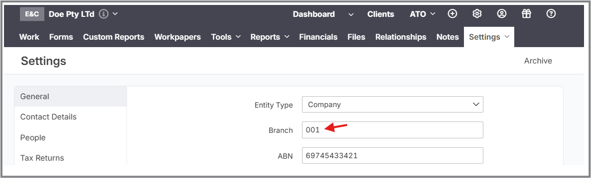 Guidance: Go to client Settings and then check the Branch Code, it should be similar on what you have via ATO portal.